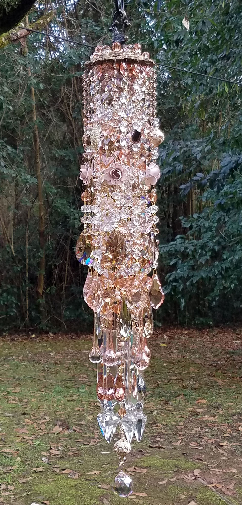 Light Rose, Gold, Violet, White and Pink Antique Crystal Wind Chime